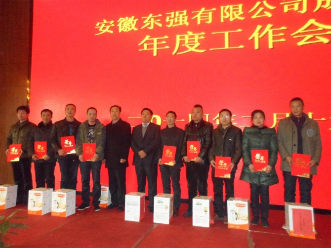 一元復(fù)始,萬象更新。為認(rèn)真總結(jié)和回顧2013年度各項工作,并對2014年的生產(chǎn)經(jīng)營管理提出明確的目標(biāo)任務(wù)和計劃。表彰先進(jìn),提升士氣,充分凝聚企業(yè)團(tuán)隊的智慧和力量,以良好的團(tuán)隊精神、團(tuán)隊能力和團(tuán)隊業(yè)績,確保2014年各項目標(biāo)任務(wù)的圓滿完成和企業(yè)的長遠(yuǎn)發(fā)展,2014年2月19日,公司在合肥同慶樓花園酒店召開了年度工作會議。出席會議的有公司領(lǐng)導(dǎo),安徽東強(qiáng)、西站、鯤翼商貿(mào)全體員工,蕪湖康特、蕪湖東強(qiáng)、六安宏順、六安鯤鵬、六安東升中層以上管理者、獲獎人員及五年以上員工。