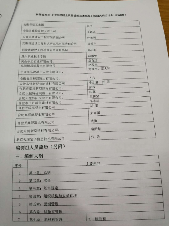 2018年6月26號(hào)安徽地方標(biāo)準(zhǔn)《預(yù)拌混凝土質(zhì)量控制技術(shù)規(guī)程》編制工作組召開編制大綱討論會(huì)(啟動(dòng)會(huì)),我公司作為參編單位,由公司技術(shù)負(fù)責(zé)人牛永勝總經(jīng)理代表參與此次會(huì)議的討論。
